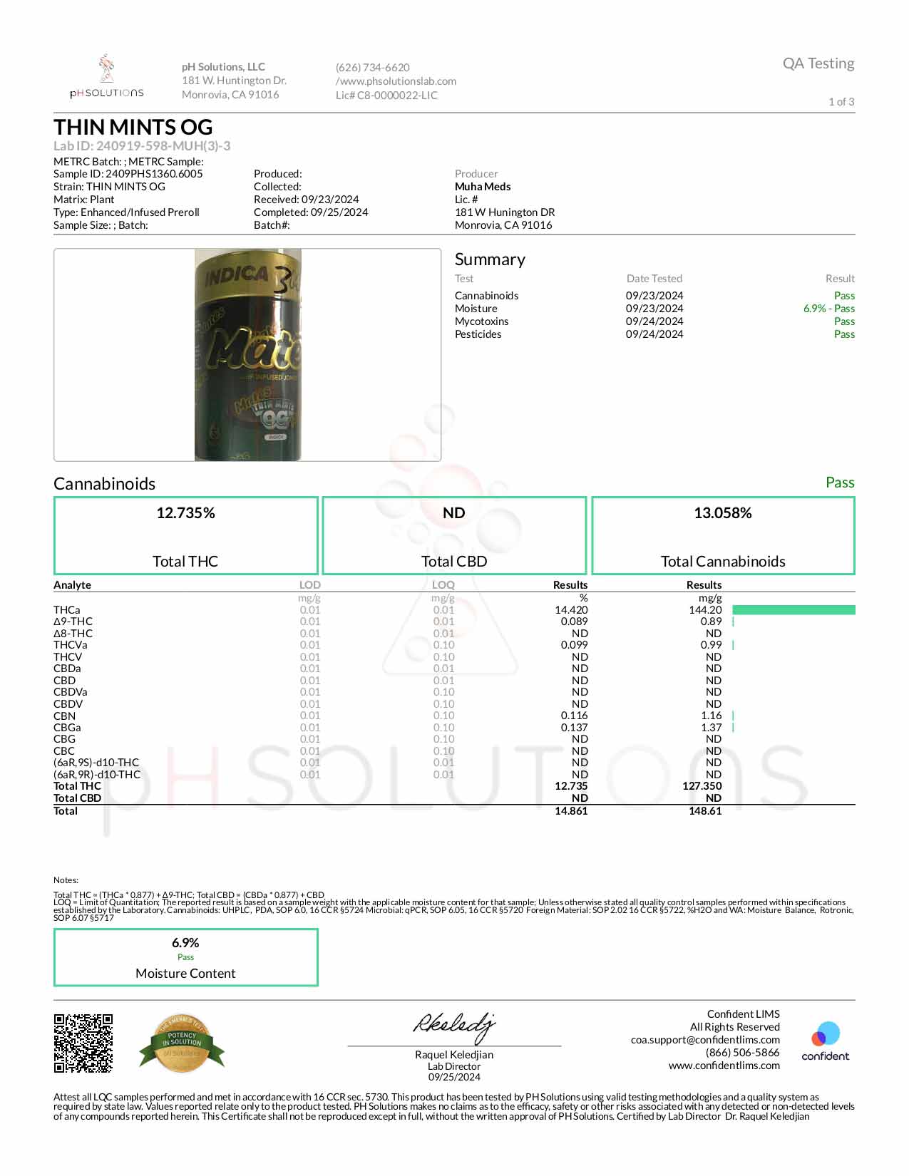 THIN MINT OG INDICA – Total Cannabinoids – 13.058%